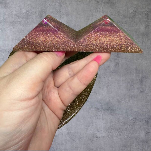 A luminous resin heart perched on a sleek stand—this piece is a quiet celebration of light, hope, and intention. Cast from crystal-clear resin and layered with a constellation of fine, shimmering glitters, the heart catches and bends the light in soft, jewel-like flashes. From certain angles it glows like a candlelit gem; from others it scatters delicate sparkles across the room, lending an elegant, dreamy atmosphere.